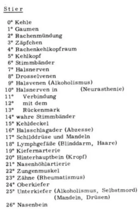 Nach Ebertin entspricht jeder Tierkreisgrad eines Sternzeichens einer Organzuordnung oder einem Organsystem. Auf manchen Tierkreisgraden zeigen sich Tendenzen zu Störungen, wie Rheuma (z.B. 23 Grad Stier) oder Gicht (25 Grad Fische). Unter anderem gelten auch die Gradzahlen um 25/26 Grad Fix als schwierig in Bezug auf Suchtproblematik oder Alkoholismus (Tierkreisgrad 9 und 25 Grad Stier, Löwe, Wassermann und Skorpion). Auch psychische Störungen (Tierkreisgrad 11 Schütze und Zwillinge: Angstzustände, 23 Stier Selbstmordtendenzen) gehören zu den Erfahrungen, auf denen die Zuordnung der Tierkreisgrade beruht. Tierkreisgrade, auf denen ein persönlicher Planet steht, können ebenfalls mit Hilfe dieser Methode betrachtet und so bestimmte Dispositionen erkannt werden.